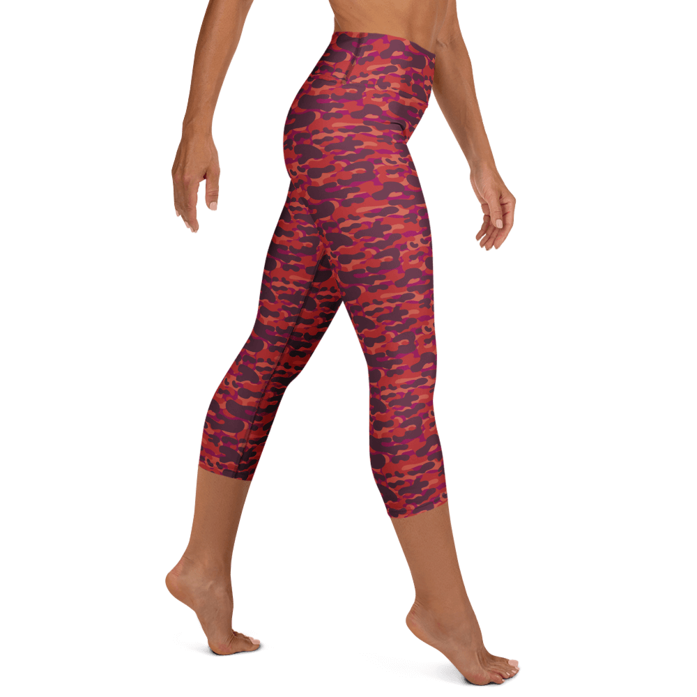 Red Hue Camo Yoga Capri Leggings